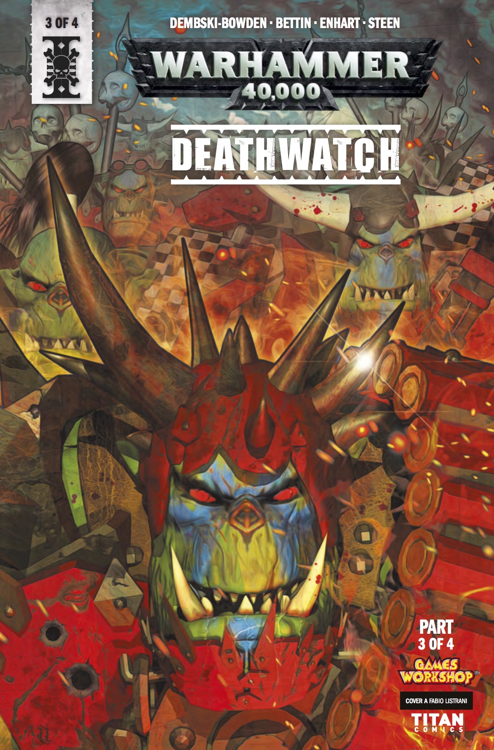 WARHAMMER 40,000: DEATHWATCH #3 Writer: Aaron Dembski-Bowden Artist: Tazio Bettin Publisher: Titan Comics FC, 32pp, $3.99, On sale: August 8, 2018 Written by Black Library superstar Aaron Dembski Bowden! The Deathwatch are the best of the best from all chapters of Space Marines! They alone have the strength of mind and body to battle the alien across the universe, defending humanity from the Xenos that would destroy them!