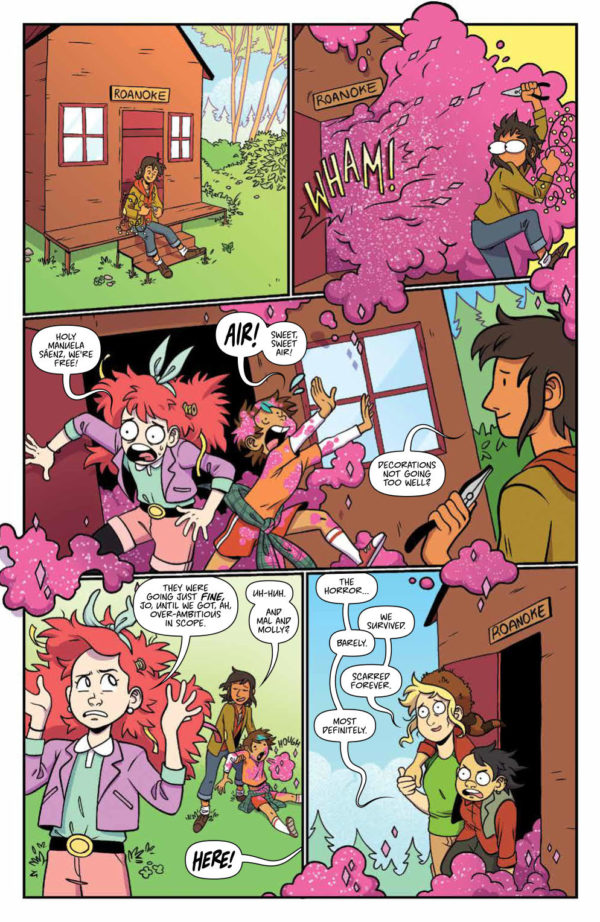 Synopsis: The Midsummer Masquerade and it’s not exactly a dream. When the question of a couples costume throws Mal and Molly’s relationship into disarray, the rest of the Lumberjanes scramble to help them. And of course now all the decorations are starting to disappear.