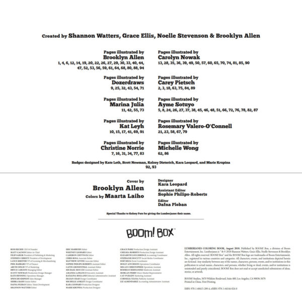 Featuring 96 gorgeous pages of original Lumberjanes art to color from series artists like Brooklyn Allen, Carey Pietsch, and Ayme Sotuyo, this book is an azure-dly good time for all.