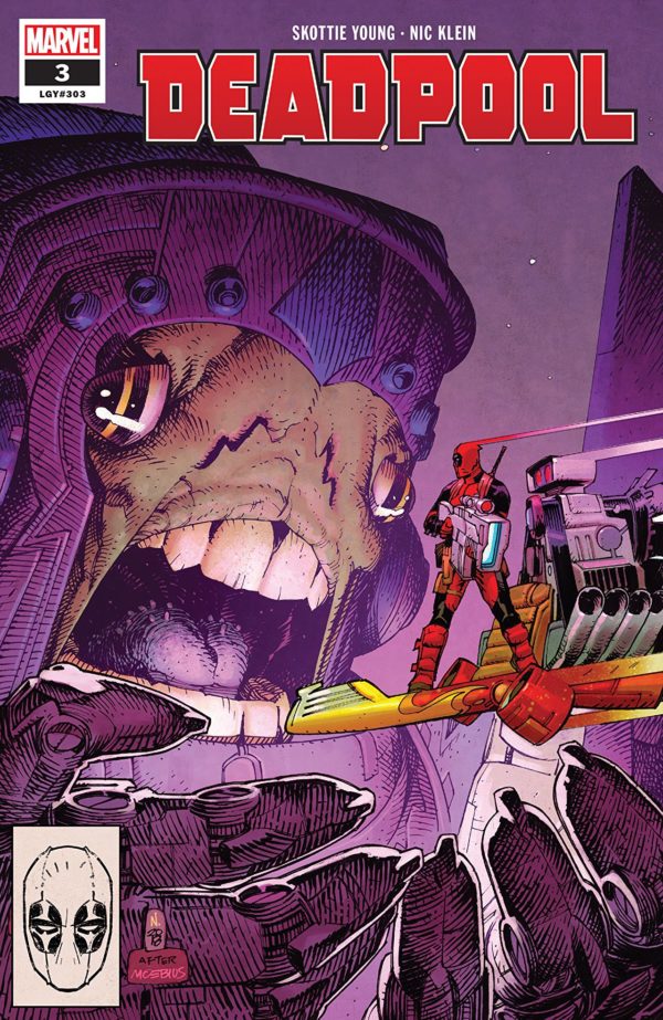 The world is being threatened by an invasion from Groffon the Regurger, a giant cosmic threat that barfs on people, which pretty much sums up this Deadpool reboot. Deadpool has the only weapon that can stop it, but Deadpool doesn’t remember how to get it to work. That’s where we left off last issue, and that’s where we pick up in this one, with Deadpool failing to get the device to work and Marvel’s other heroes complaining about how Deadpool sucks. Well, sure, if they’ve only been reading this book.