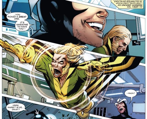 Picking up right where the previous issue left off, Beast unleashes Banshee on the attacking Reavers. Havok notices that something isn’t quite right with Banshee, and a caption box helpfully explains he’s been in a coma since he was brought back to life by Apocalypse’s Death Seed (ew) in Uncanny Avengers #23. Beast has been trying to cure him, but it hasn’t been too successful. All Banshee does when he’s not shrieking at enemies is stand around silently. Plus, he’s not looking so well.