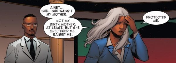 At the Xavier Institute, Jean Grey and Dr. Cecilia Reyes give Prestige an examination, psychically and physically, to make sure she’s okay after Mesmero messed with her mind. Apparently, she’s perfectly fine now. Kitty doesn’t want to answer whether Rachel can still be on the team though. If you think Kitty is being a total hardass here, you should see how mean she’s been to Havok in Astonishing X-Men. At the Wakandan embassy, a diplomat tells Storm that Ainet is dead.