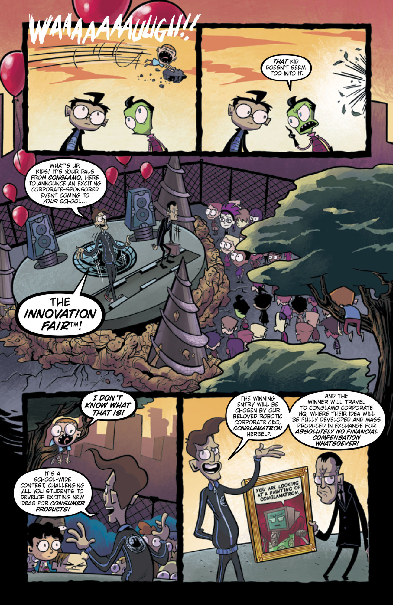 Dib and ZIM both compete in the Skool’s Innovation Fair, but ZIM’s ultimate project—which was going to both humiliate Dib AND finally help ZIM take control of Earth—has been swapped with GIR’s ultimate project, which is… something called “Mr. Wiener Face.” But somehow, the judges are impressed! Could it be that the way to control the humans is through their love of processed meats? ZIM will find out!
