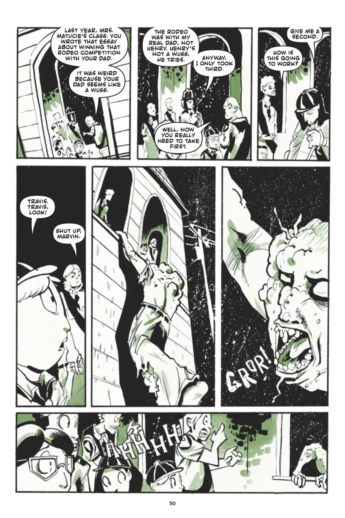 Oni Press has sent us previews for five comics and trade paperbacks hitting stores next week, on August 8th, including Spectacle #7, Shadow Roads #2, Invader Zim #33, and Junior Braves of the Apocalypse Vol. 1 and 2. Check out the previews below: