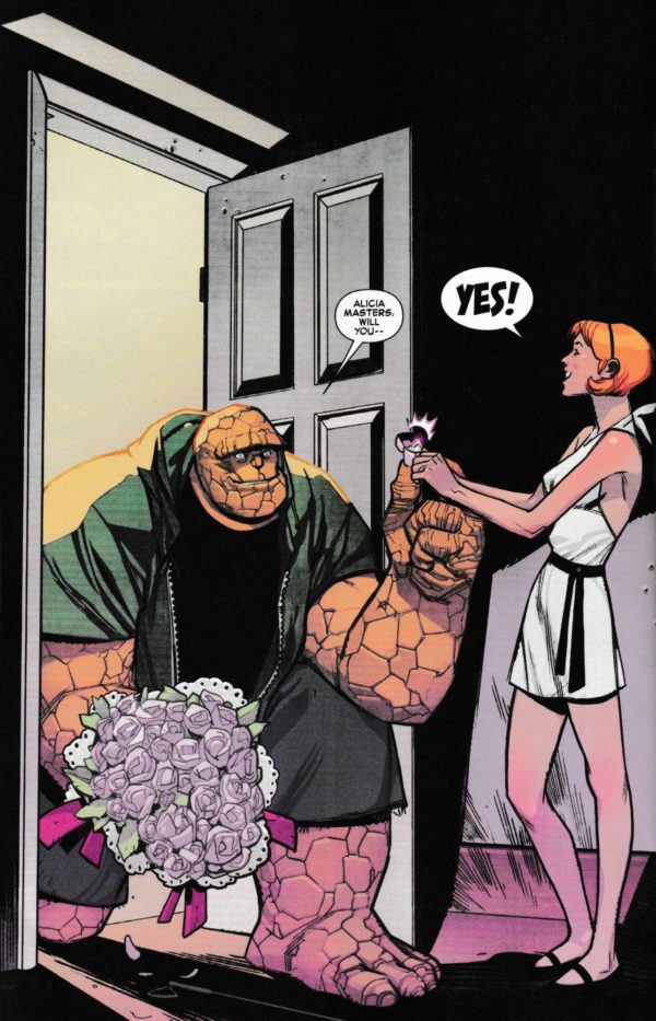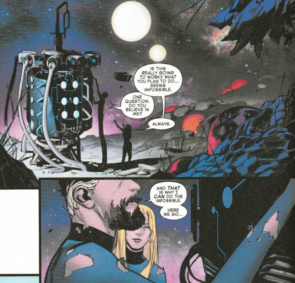 But that doesn’t mean that other massive things aren’t going on in the other characters lives. And on the anniversary of their original trip into space, both inside the comic and outside of it, there is some attempt of closure. Of moving forward. And change. And so while Fantastic Four #1 did not deliver on what it promised, rather than Batman #50 which gave no wedding, or X-Men Gold #30 which gave a different wedding, Fantastic Four #1 is just delaying the decision.