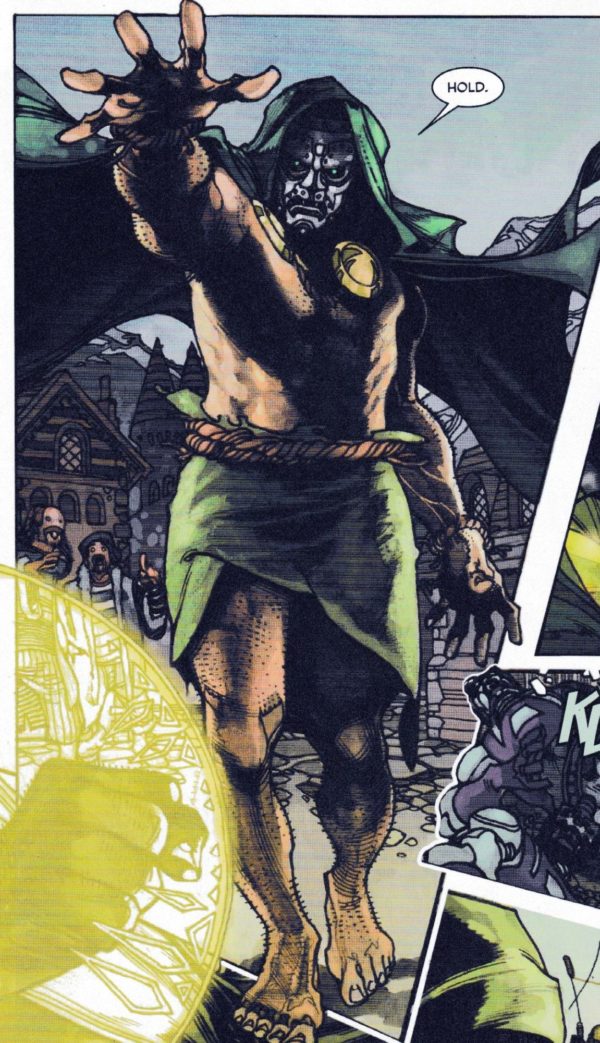 I understand we might expect a big Marvel society wedding in December. And no ducking out of this one. But Ben Grimm and Alicia Masters aren’t the only ones going through changes. Doctor Doom has returned to Latveria, and in a state of flu after trying to be the good guy for the past few years after his own Secret Wars godhood (and the return of his nose) and having a bit of a crisis over in Iron Man #600, is now all for reclaiming Latveria from his current president for life by leading a people’s revolution. And doing it topless.