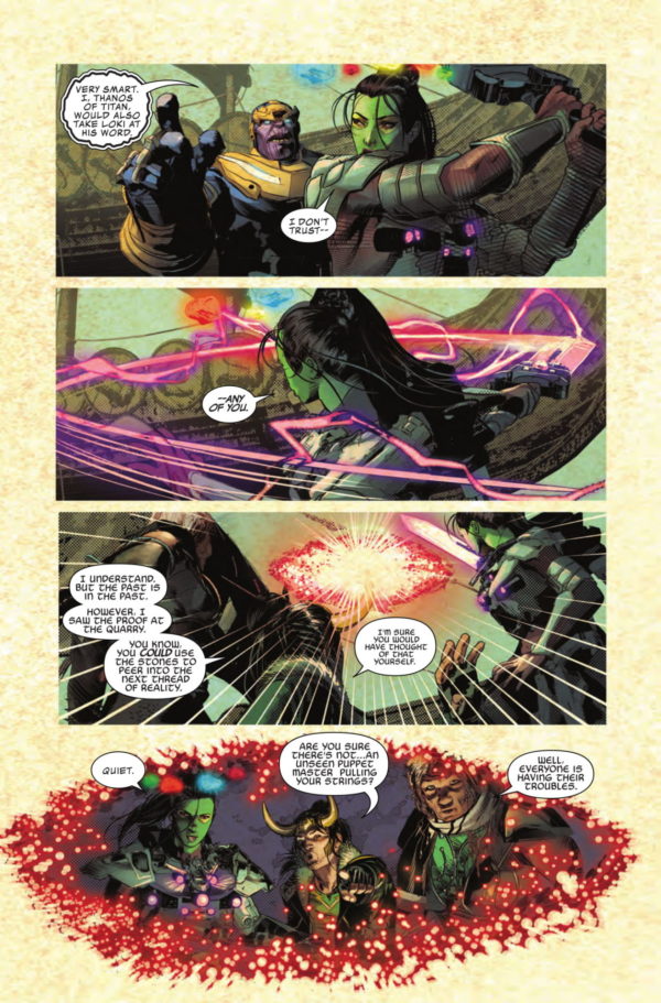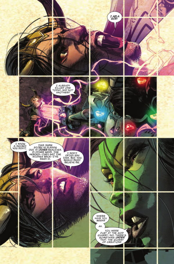 Obviously not, he’s the good guy. Loki is, however, not. And in Infinity Wars #3 he too has been peeking into neighbouring universes to see how they did it. And, as yet, no Loki has stared back at him, telling him to piss off.