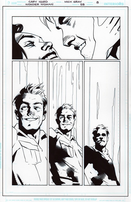 It begins, with somewhere Hippolyta describes as ‘places even the brightest light cannot illuminate.’ No, not Twitter, this is the underground, below Paradise Island, where Ares, God Of War, has been imprisoned for a very long time. And Cary Nord portraying those worlds with great distinction and a strong flow, and not a million miles from the George Perez/Phil Jimenez look that this comic used to enjoy, albeit one with more spot blacks, harsher angles and a slightly cartoonier facial approach. And hell, there are moments that I could swear were pure Deodato as well.