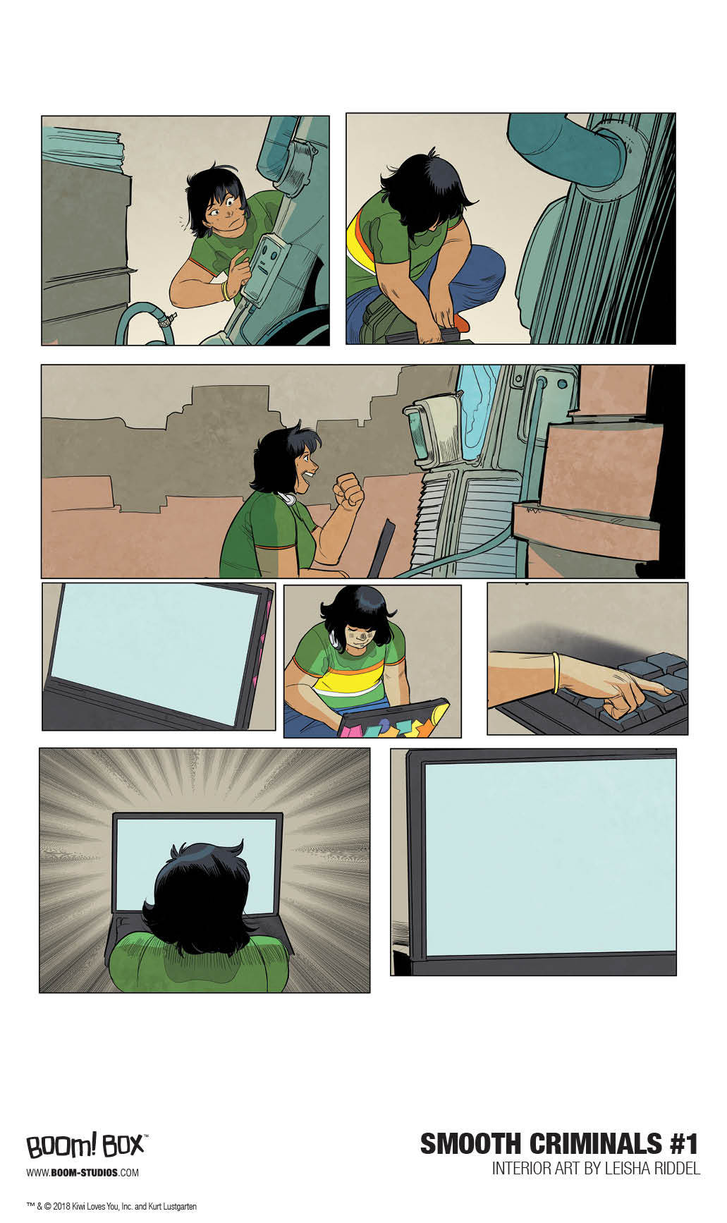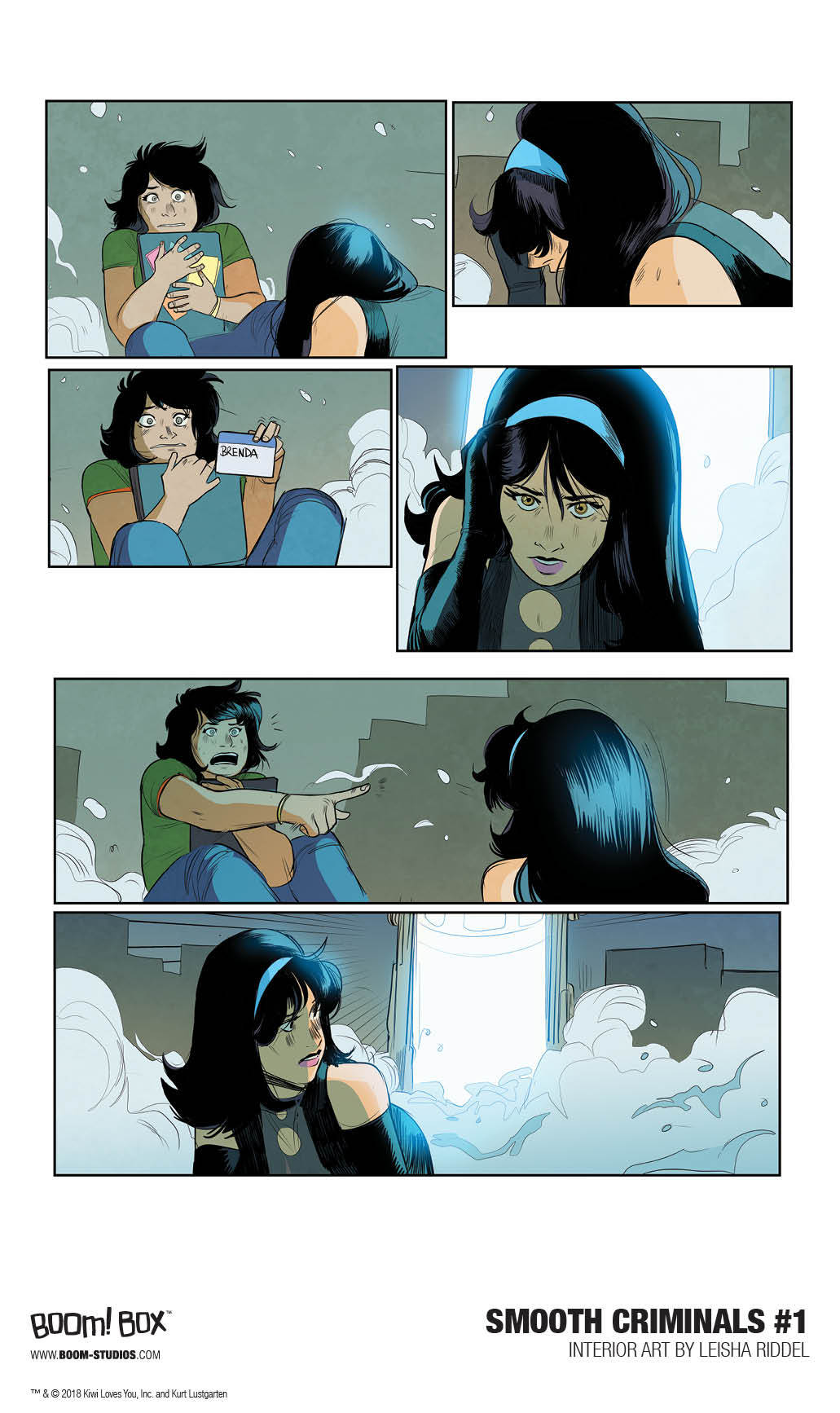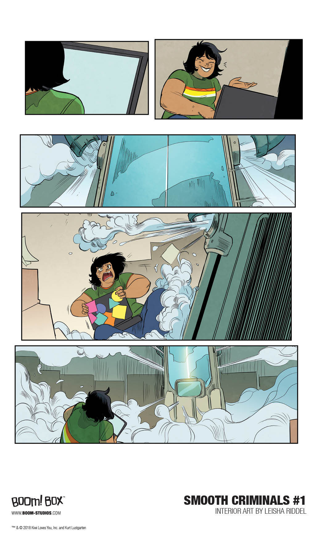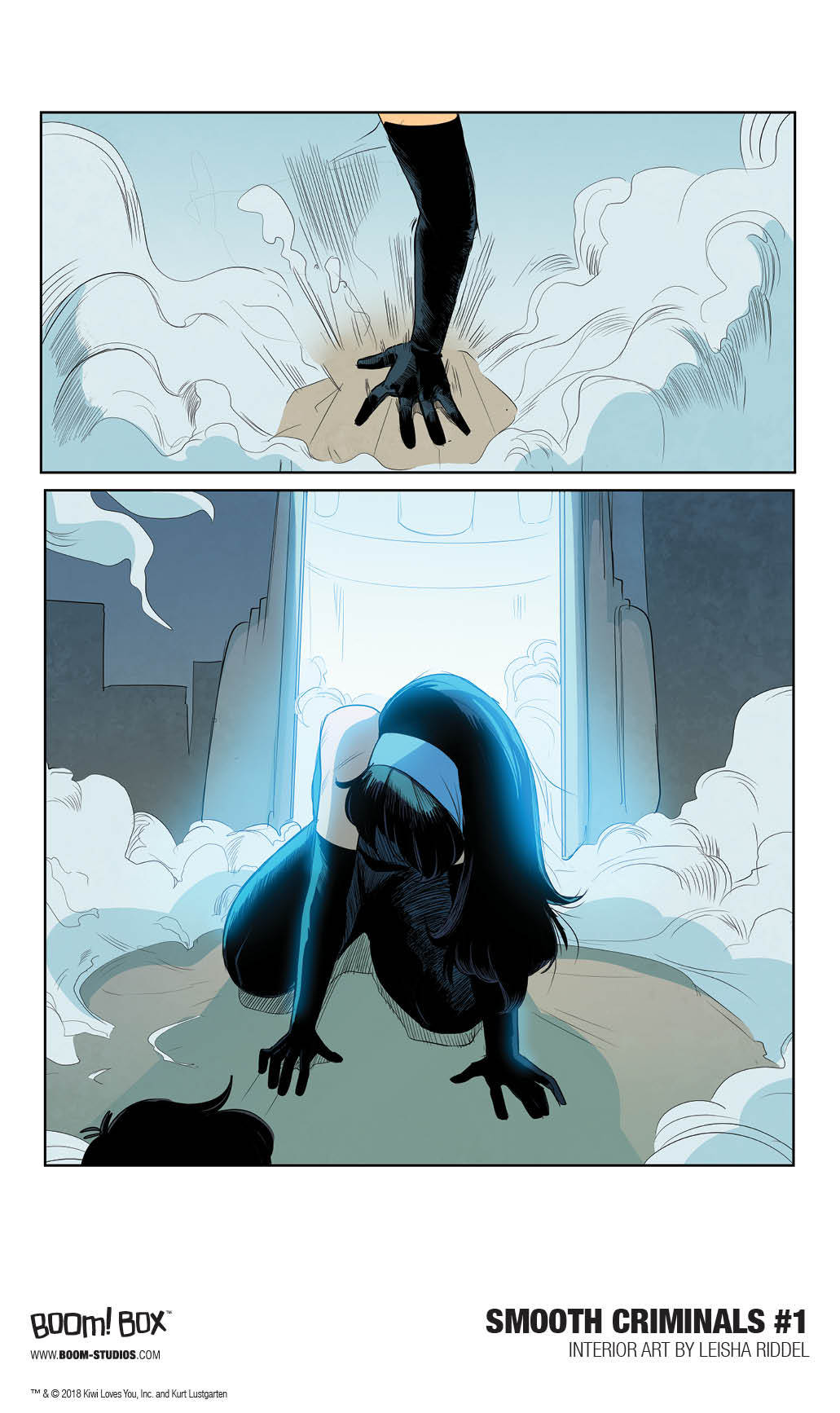 Explosive publisher BOOM! Studios has released an unlettered first look preview at Smooth Criminals #1, the first issue in a new series by writers Kirsten “Kiwi” Smith and Kurt Lustgarten and artist Leisha Riddel. The story: