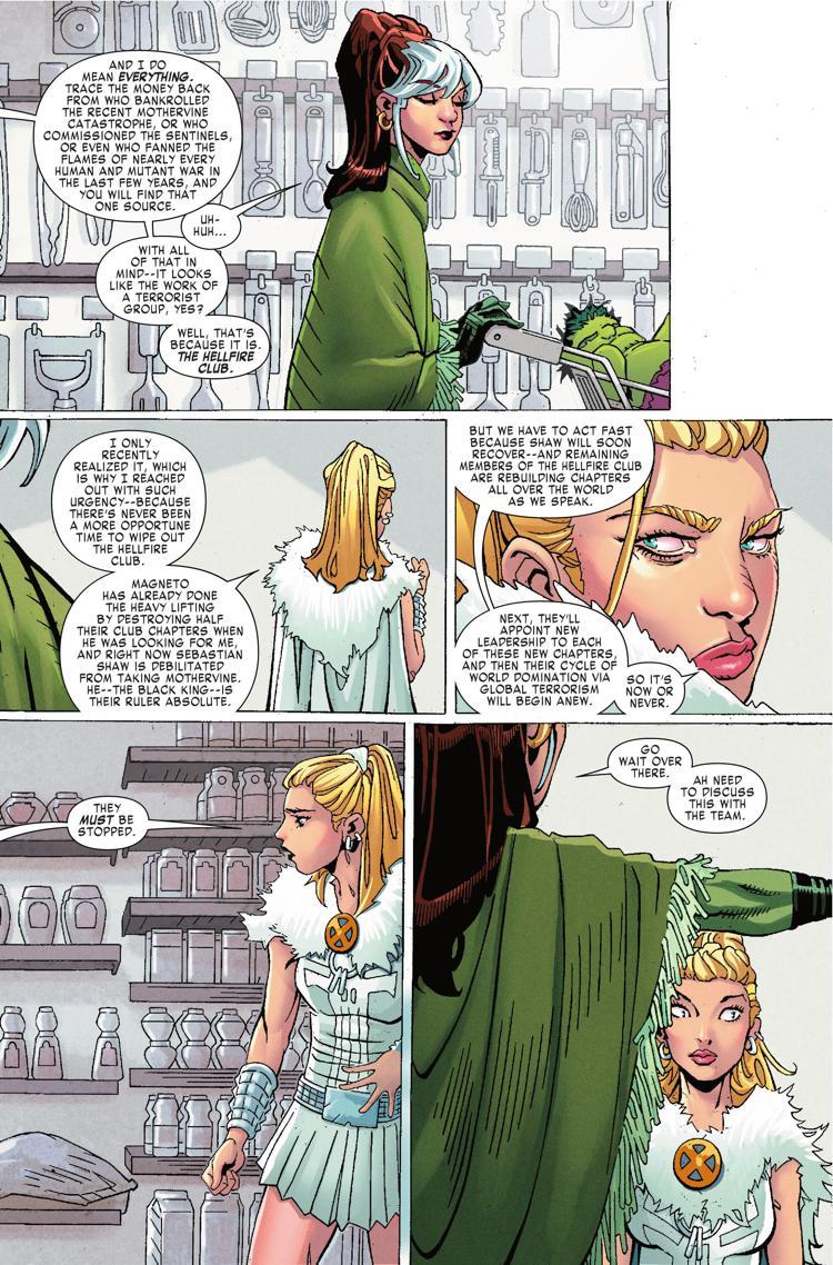 Before she was an X-Man, Emma Frost was White Queen of the Hellfire Club where she labored under the yolk of Sebastian Shaw, the Black King. Now she sets her sights on the club, determined to tear down the organization that wronged her…if she can convince the X-Men to help out. PLUS: Part 5 of X-MEN BLACK: APOCALYPSE!