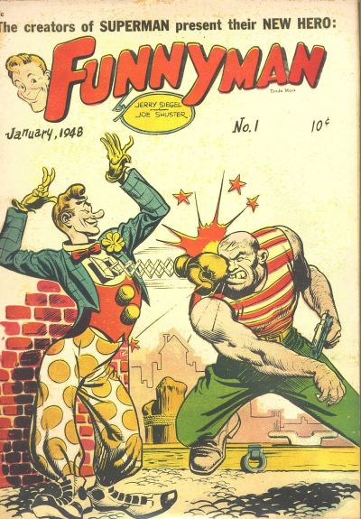 Funnyman was created by Superman creators Jerry Siegel and Joe Shuster as a clownish superhero, while they were still working for DC Comics. They anticipated a decline in the popularity of conventional superheroes, thinking a comedy hybrid character would have sustainable appeal.