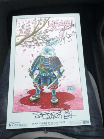 Stan Sakai‘s move of Usagi Yojimbo from Dark Horse to IDW, was accompanied by his signed print. sold for $50.