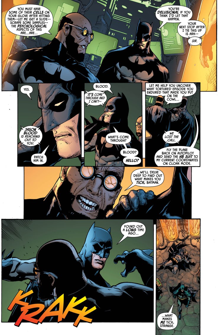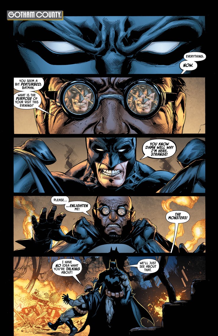 It shouldn’t be surprising considering the billionaire status of his alter ego, Bruce Wayne, but Batman is apparently not a fan of socialized medicine. Just look what happens when Hugo Strange offers to give Batman free psychiatric care in this preview of tomorrow’s Detective Comics #998?