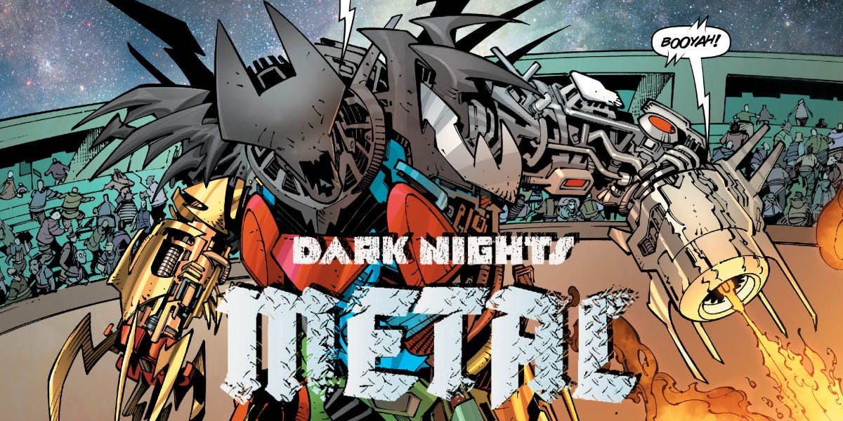 Dark Knights: Metal was the crossover event splash from Scott Snyder and Greg Capullo published a couple of years ago, that rather excelled at crossing over everything it could, from Challengers Of The Unknown to Sandman to Hawkman, while playing air guitar in the process. It began with the Justice League becoming a Transformer and ended with Jack Kirby’s Source Wall being rent in twain. It certainly had scale.
