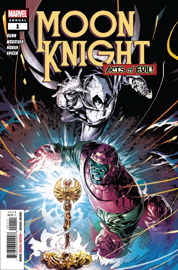 Moon Knight Annual #1 hits stores this week from Marvel Comics, by Cullen Bunn and Ibrahim Moustafa, continuing the Acts of Evil Summer annual event. We’ve got a preview below.