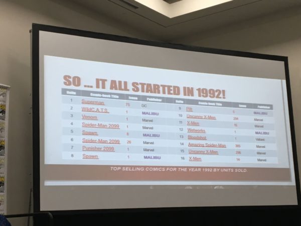 Ultraverse comics often had Ashcan editions that were given to retailers as previews for the upcoming titles. Richie reminded the audience that in the pre-internet days these low-cost comics (which had originally been used primarily to secure copyrights) were effective.