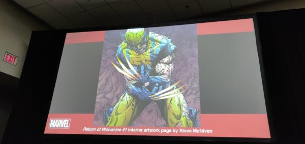 At the X-Men panel at San Diego Comic-Con Sunday, the most-anticipated panel of the entire convention, Marvel revealed the first page of interior artwork for Return of Wolverine by superstar artist Steve McNiven. The series will bring the original Wolverine back from the dead in a milestone for comic book publishing where Marvel actually managed to publish four four-issue mini-series and two one shots that all essentially served as #0 issues to the actual Return of Wolverine mini-series.