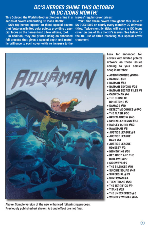 During San Diego Comic-Con, Bleeding Cool told you about the DC Icons covers for October. Foil covers on 29 comic books that month as standard. Well, now we have the full details of which title gets what.