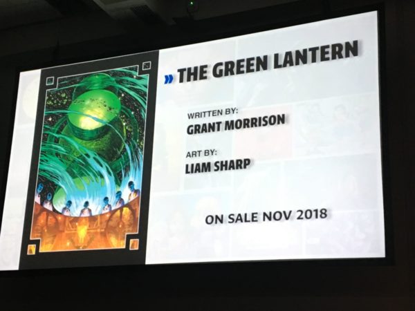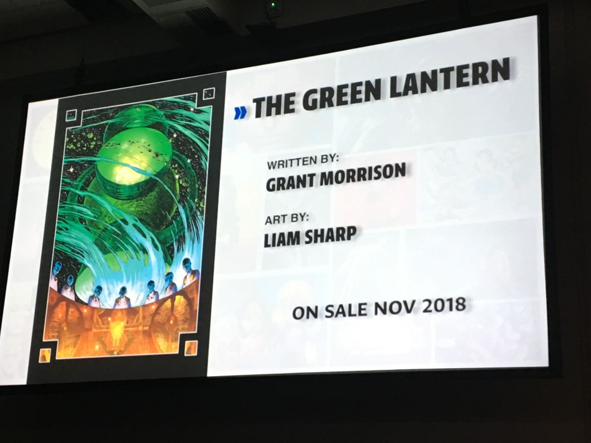 Sharp and Morrison had “chatted endlessly” about Green Lantern after an industry party. The story will be a “normal police procedural on a grand scale.” Sharp gave the example that if “some cosmic entity were constructing a massive, alien mega-structure around a star but it was blocking interplanetary traffic then Green Lantern would have him move it.” Fans should expect the return of characters from the 1950s-60s. “This is for Old School, longtime fans. This is for Gil Kane fans.”