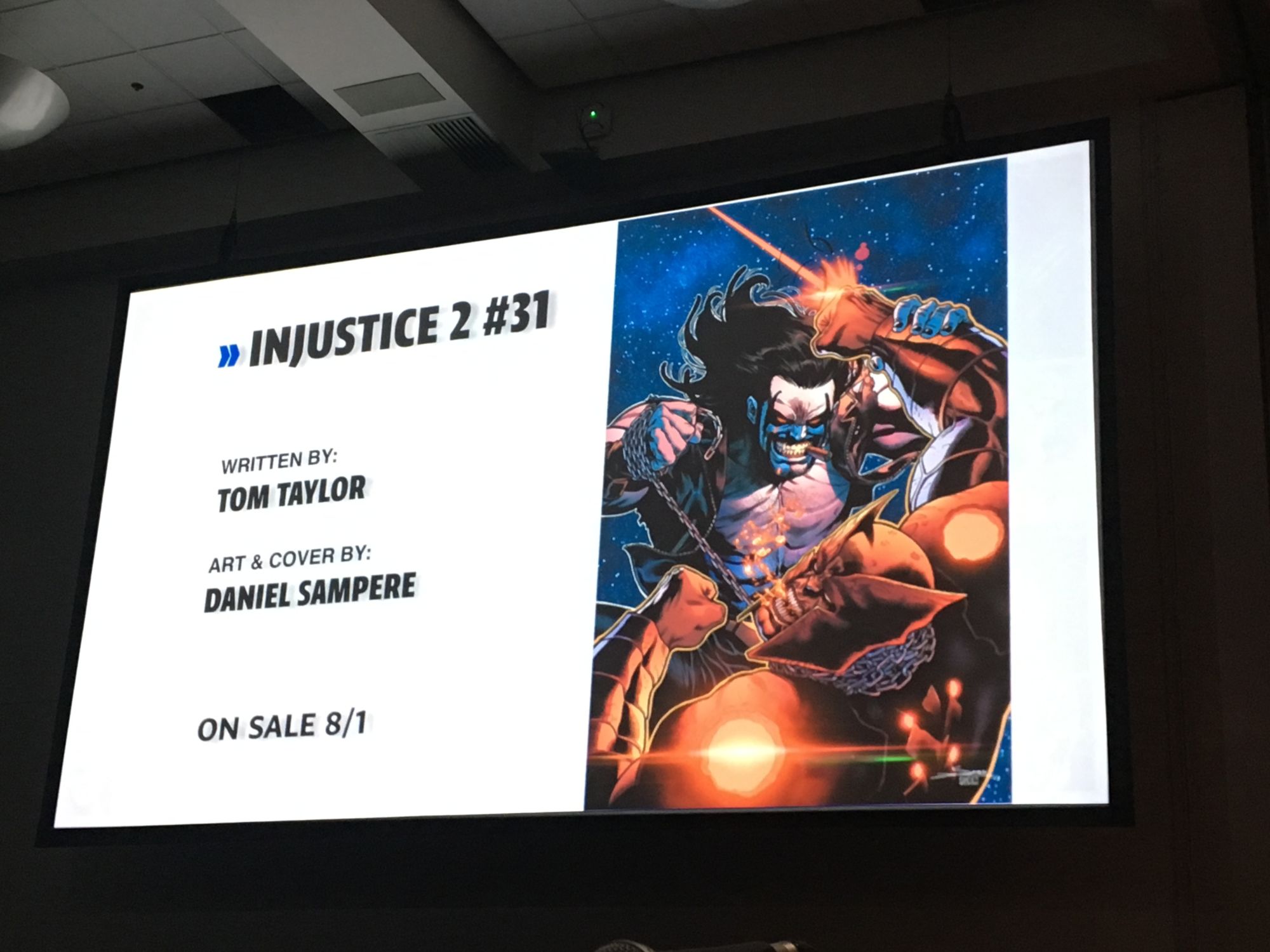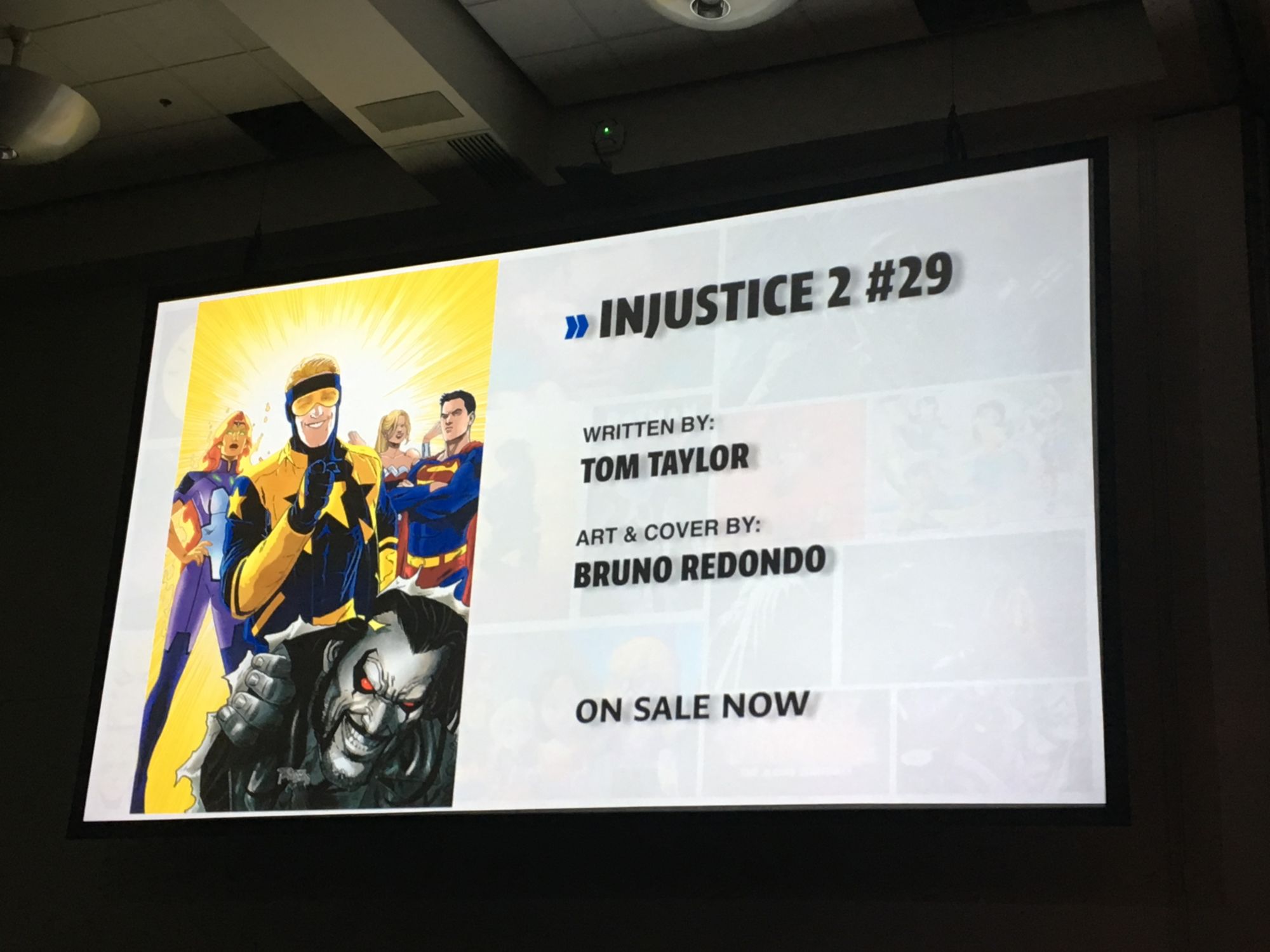 Taylor is still happily working on Injustice 2. The Titans and Booster Gold are coming. Lobo, too, as the title is in the midst of a giant space epic. Starro will become a Red Lantern and the next arc is called “Lobo Should Not Have a Power Ring.” Guy Gardner will remain dead and serve “as a conscience in Hell.” About his work, Taylor says that he feel as if he accomplished something great when an “adult man dressed as Blue Beetle came up to me and said ‘you made me cry on a train’. That’s the goal!” Taylor discussed how not only will he be marrying Killer Croc and Orca but that in a recent scene of Batman yelling at Booster Gold over a monitor for stealing the Javelin to go into space he was only wearing his cowl and pajama pants. Catwoman was there.