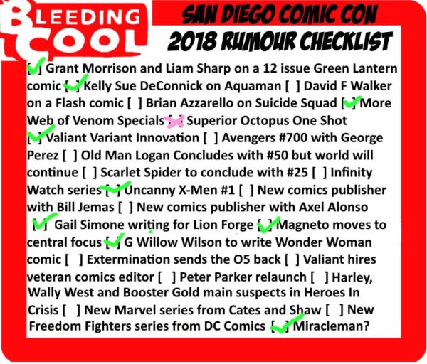 Before San Diego Comic-Con, Bleeding Cool ran a checklist of rumours we had run on Bleeding Cool (And a couple that we hadn’t) ahead of the show, predicating what may be announced there.