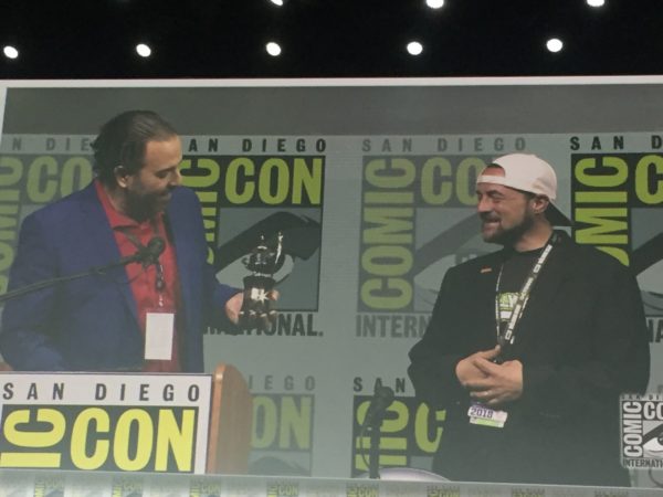 Much like Dante in Clerks, Kevin wasn’t supposed to be here today. This past February he suffered a major heart attack, commonly known as a “widow maker”. According to Smith’s doctor, the type of blockage which caused the attack kills 80% of patients and that Kevin being “blazed as f#ck” prevented his stress levels from compounding the attack. Kevin lived, and that’s what made this Hall H appearance special, and everyone, from Director of Programming Eddie Ibrahim (who gave Smith the coveted Inkpot Award) to the thousands of fans in attendance, knew it.
