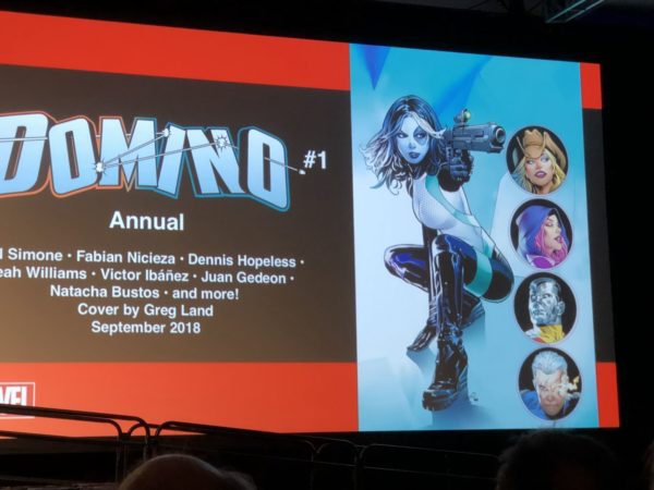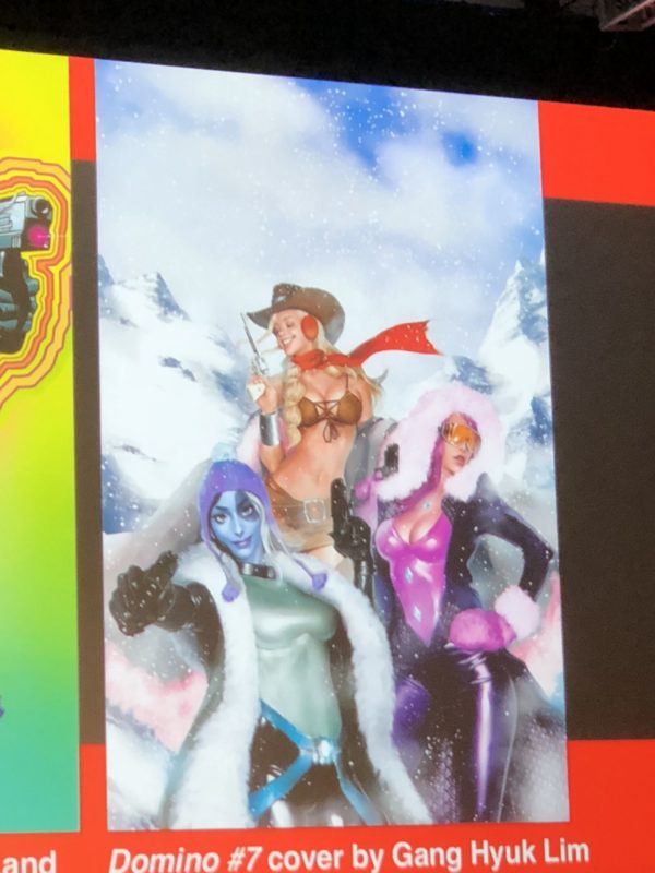 Domino #1 is going to a fourth printing. The net arc will involve Morbius and vampires, who think she is a vampire due to her white skin. And not having seen the movie. There’s something very special about the Domino preview they are running below which is worthy of its own headline, so it will get one.
