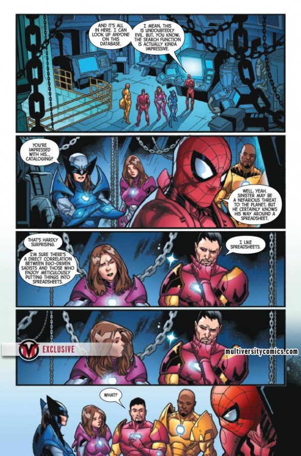 It’s all part of the click economy that fuels the 24-hour comics news cycle and the incestuous coupling of comic book publisher and comics news source. It’s good for business, for publishers first and websites second. But more useful for actual readers is probably to just click once to read all the X-Men previews right here at Bleeding Cool (though admittedly, it may even out by the time you close all of our obtrusive ads). Hey, at least we tried. We snagged the common previews from Comicosity for X-Men Blue #33, Exiles #6, and Old Man Logan #45, and downloaded AV Club’s EXCLUSSSIVE Domino #5 preview and Multiversity’s EXCLUSSSIVE Adamantium Agenda #4 (complete with ugly watermark). Check out all the previews below: