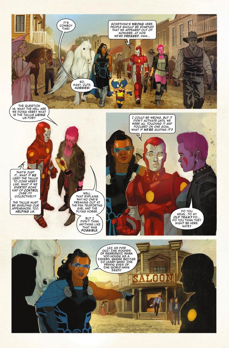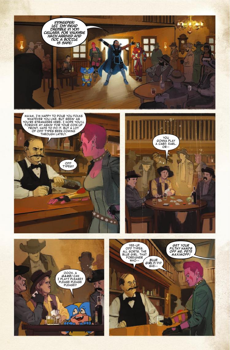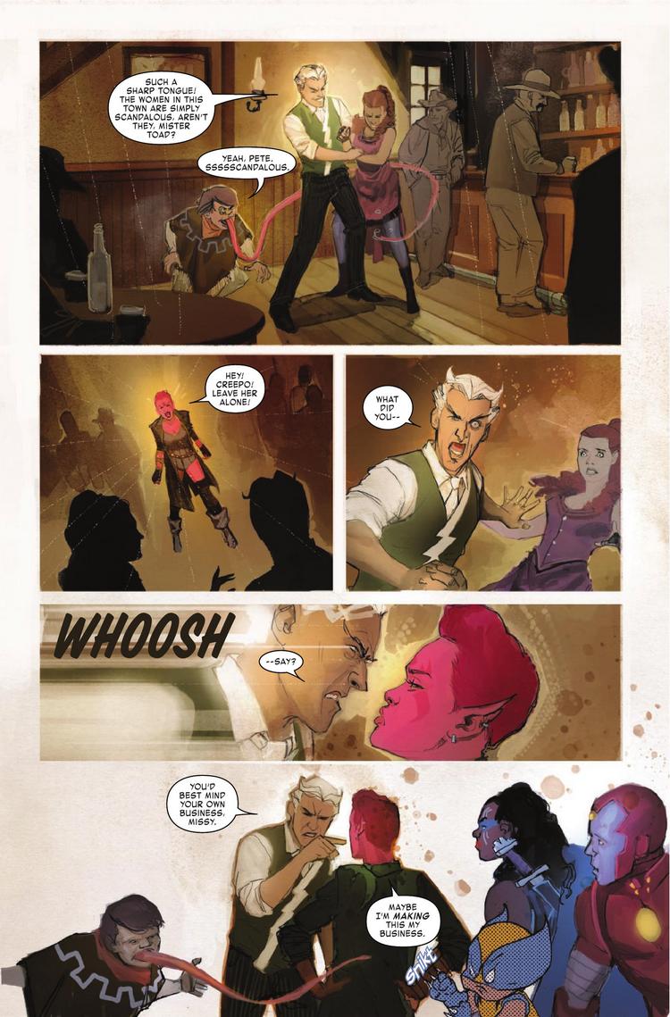 The Exiles land in the Old West! A dusty town of innocents is under the thrall of the Brotherhood of Evil Mutants — including their sharpshooting leader, Magneto! But this town ain’t big enough for all those mutants, and the Exiles aren’t about to let the Brotherhood get their way. Saddle up for a wild ride with guest artist Rod Reis!
