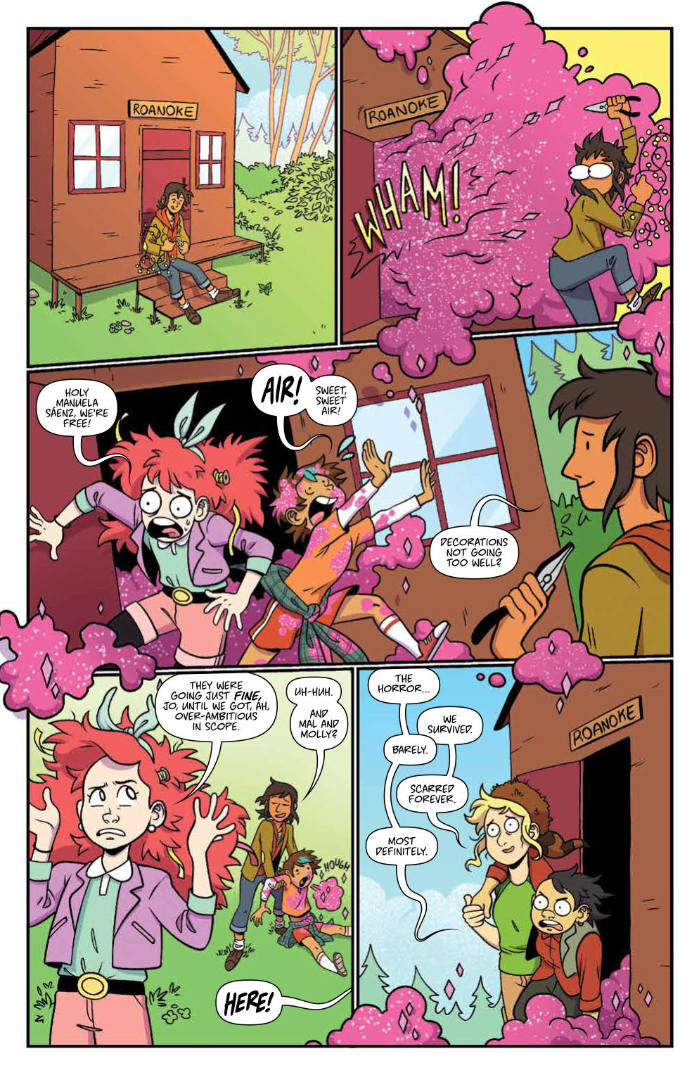Synopsis: The Midsummer Masquerade and it’s not exactly a dream. When the question of a couples costume throws Mal and Molly’s relationship into disarray, the rest of the Lumberjanes scramble to help them. And of course now all the decorations are starting to disappear.