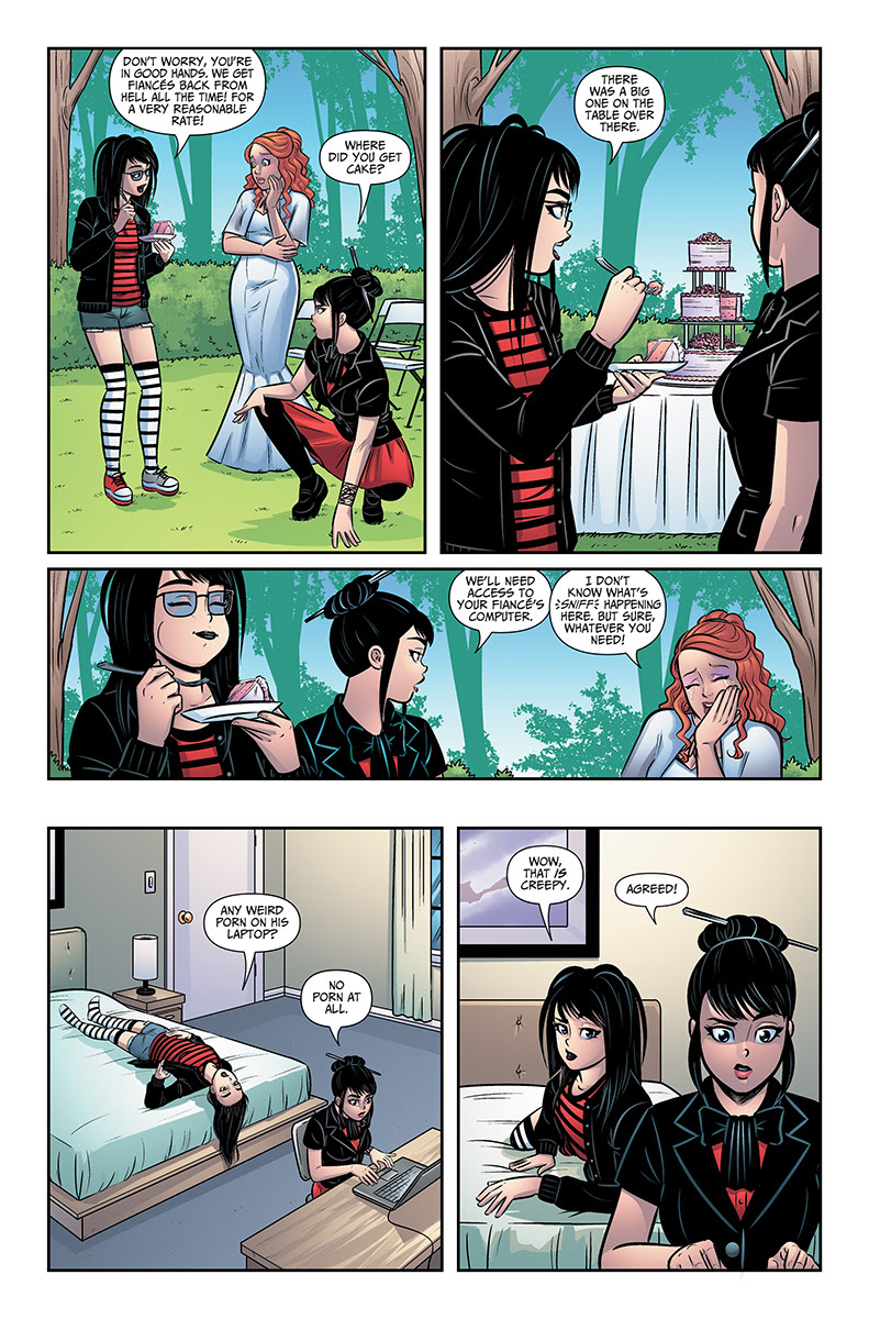 Image Comics has released an early sneak peek at Exorsisters, the new series by Eisner Award-winning writer Ian Boothby and artist Gisèle Lagacé, hitting stores in October, about a pair of sisters who investigate paranormal cases. But don’t call them Ghostbusters! This series leans a lot more heavily toward the goth side.