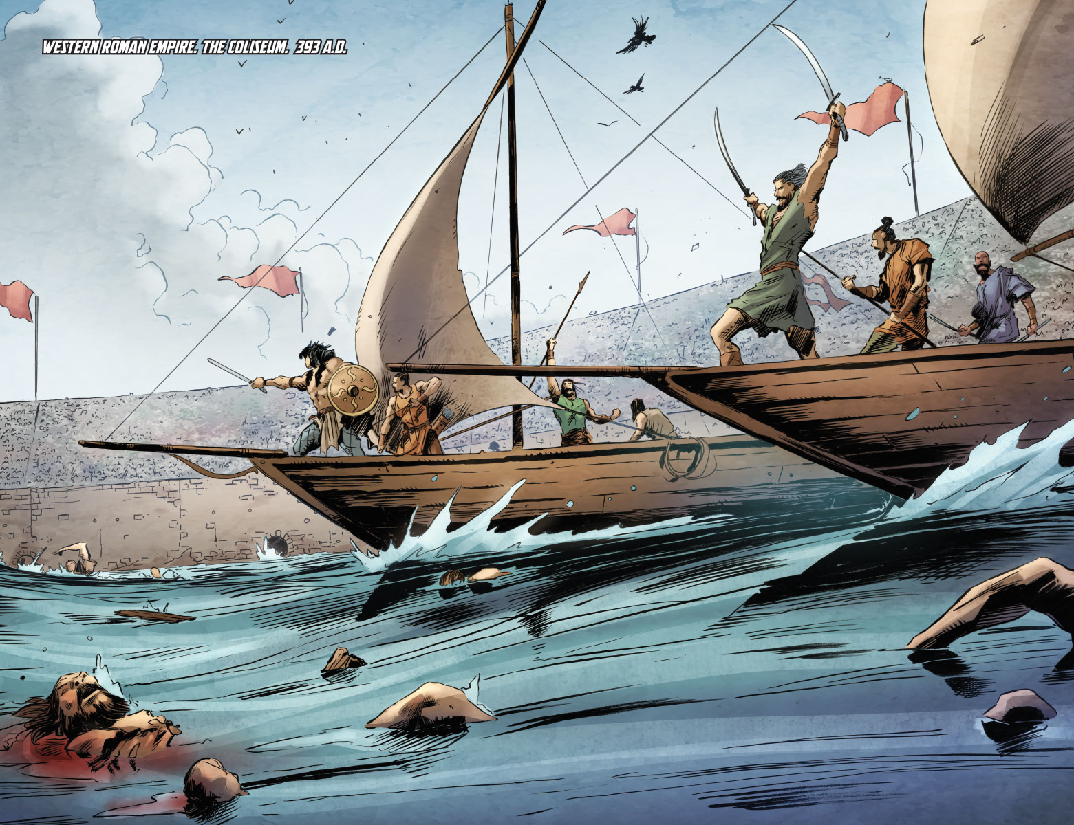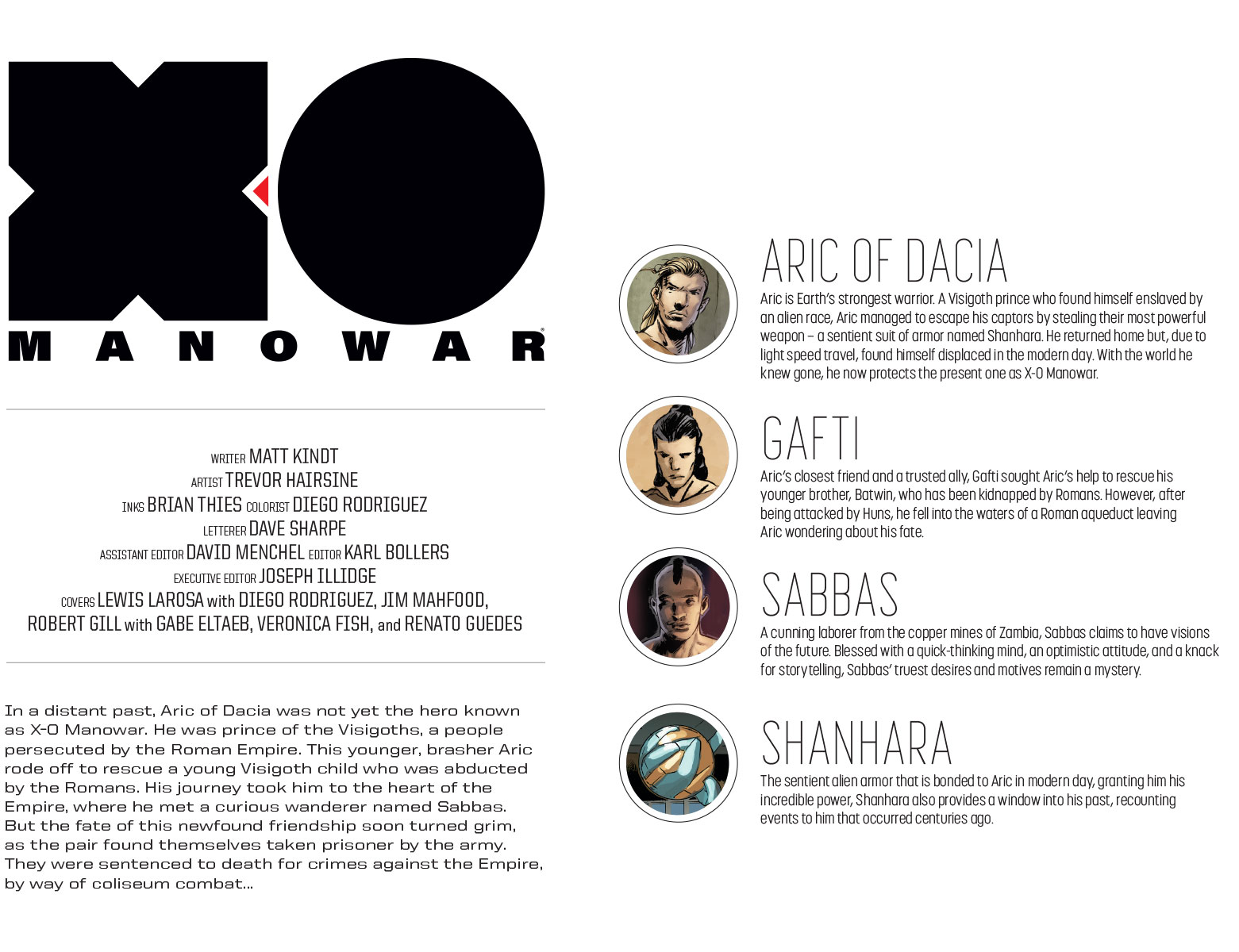 Sentenced to die for crimes against the empire, Aric of Dacia and his new comrade, Sabbas, have escaped the gladiatorial arena… only to find themselves in far more dire straits! Centuries before he would become X-O Manowar, can a brasher, younger Aric – sworn to combat the Romans at any cost – outwit and outmaneuver the machinations of the planet’s most powerful civilization… even as death threatens him and the fate of the entire Visigoth nation?
