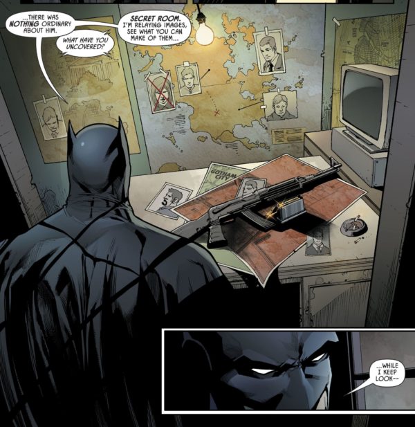 Batman is on the case. Being a detective in Detective Comics #988 today. I know, who’d have thought?? So, tracking down a murdered individual, finding his secrets to discover who murdered him…