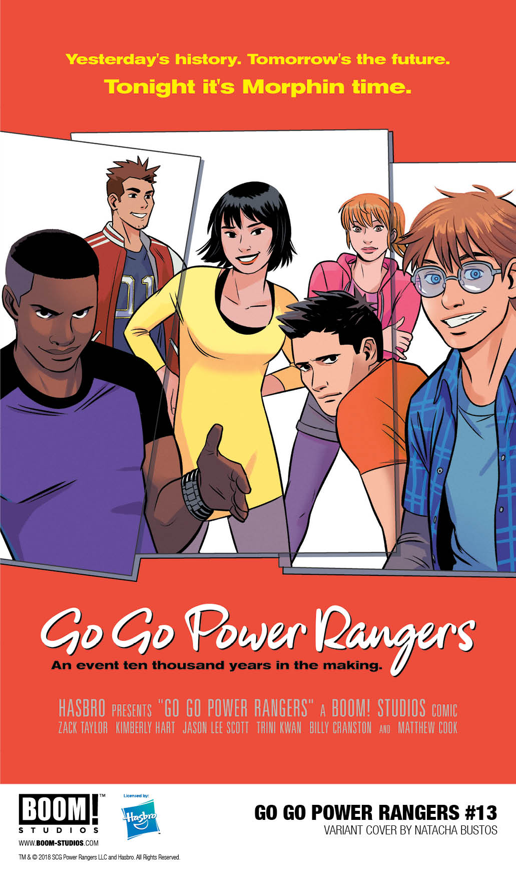 The grid has been shattered, so what’s left for the Power Rangers? Time to return to the humdrum life of regular ongoing monthly comics with nary a super-mega-crossover event tie-in in site. But cheer up, PowerBronies — life must go on, and so BOOM! has unveiled the first look at Saban’s Go Go Power Rangers #13, in which a new storyline begins, which will, presumably, begin setting the stage for another super-mega-crossover event next year.