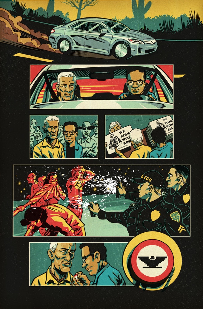 Barajas: The accomplishments are true. I can back up the facts. But the storytelling is based on folklore, stories from survivors, and history books I’ve researched. When I was in high school my world history teacher Mr. Johnson used Maus to teach my class about the Holocaust. It changed my life forever. I was never so engaged in school and history. I kept thinking to myself “why aren’t all my class using comics to teach me?!” I think comic books have enormous power and I hope this can show today’s divided voter that you can inspire change by peaceful protest and by voting in not just the presidential election but in the general and midterms.