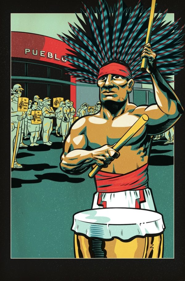 Debuting this week on Kickstarter is a new comic called La Voz De M.A.Y.O. Tata Rambo, telling the story of Ramon Jaurigue, nicknamed Tata Rambo, a World War 2 veteran who successfully fought for equal rights and opportunities for the Pascua Yaqui tribe in Tuscon, Arizona, founding the Mexican, American, Yaqui, and Others (M.A.Y.O.) organization while struggling with his own family life. The comic is written (and lettered) by Jaurigue’s great-grandson, Henry Barajas, with art by Jason “Gonzo” Gonzalez, and edited by the esteemed Claire Napier.