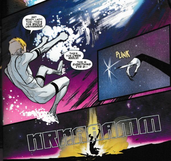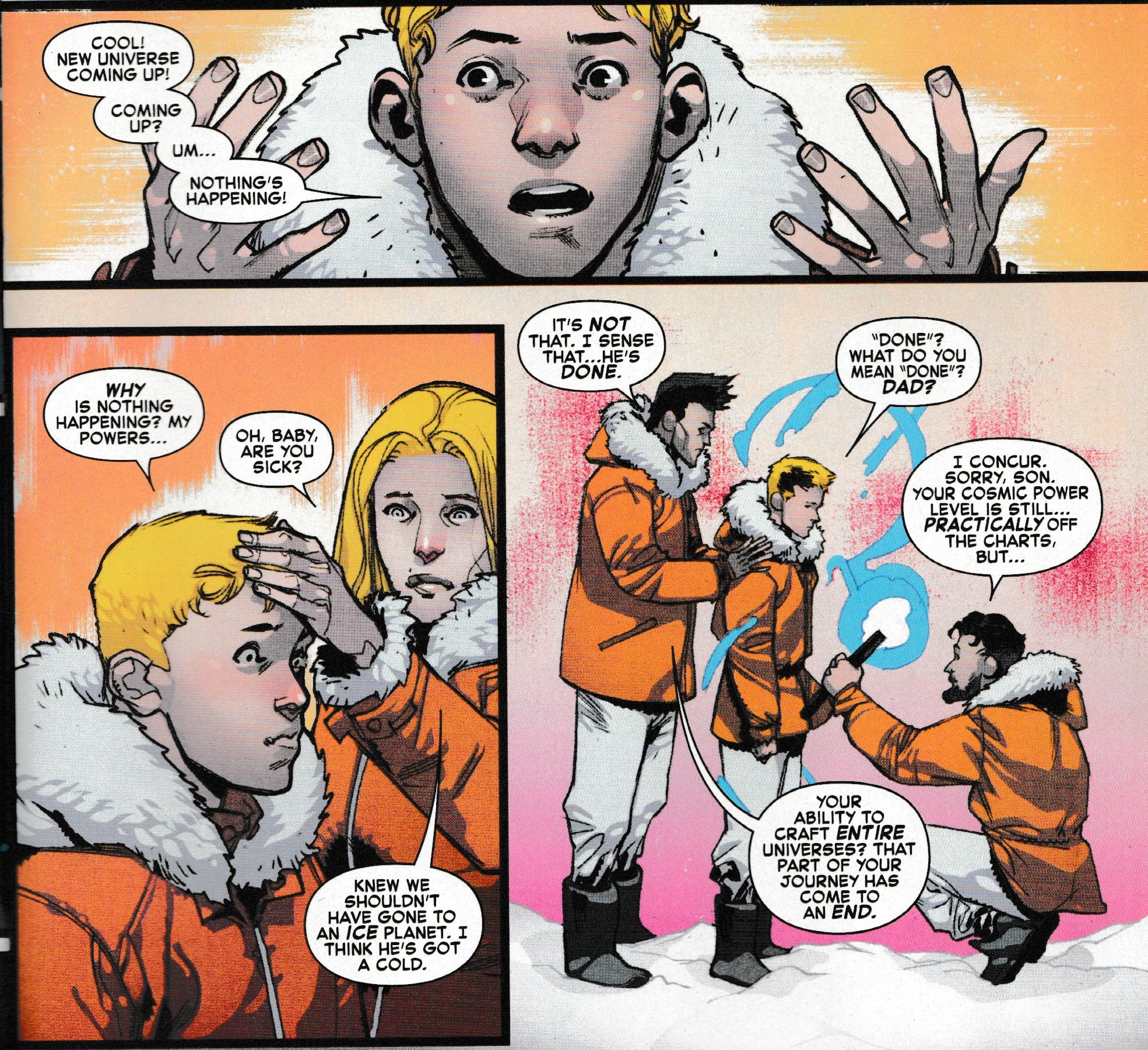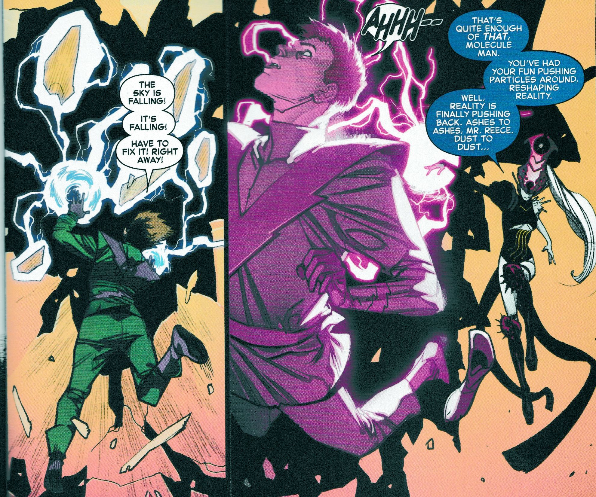 Well in today’s Fantastic Four #2 from Dan Slott, Sara Pichelli and Marte Gracia we meet The Griever At The End Of All Things. And we get this not just once, with Owen Reece, The Molecule Man, a being who has the power to do anything. Manipulate matter and energy as he sees fit in any way conceivable and in Fantastic Four, launcg=hing universes into the new multiverse…