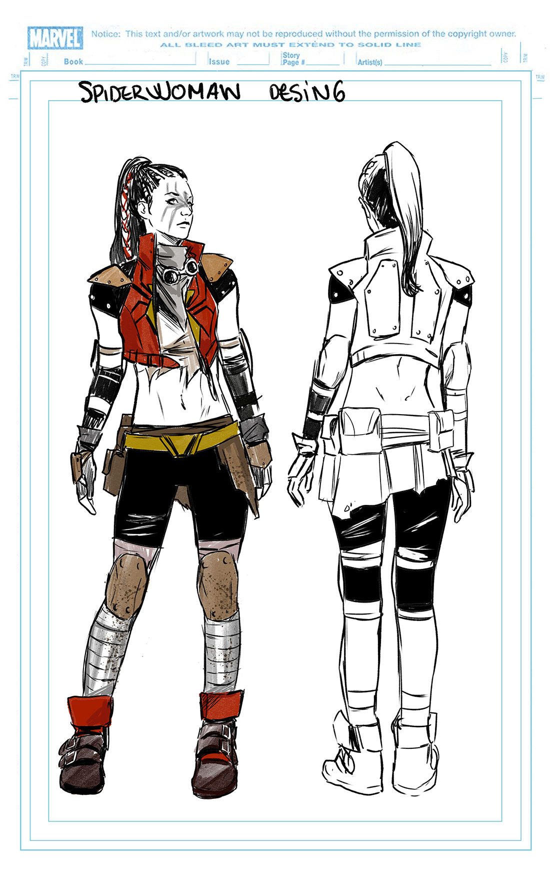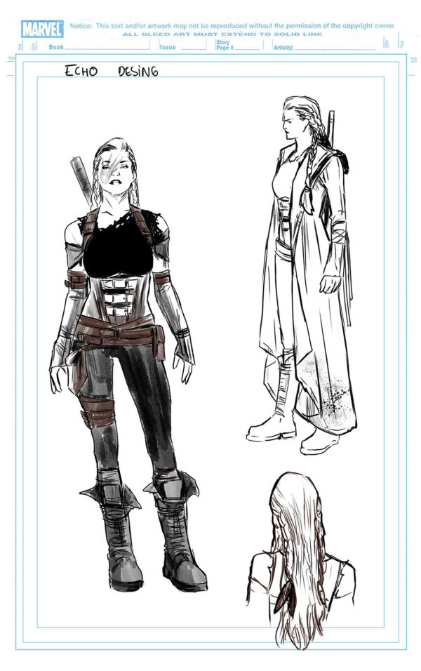 Yesterday saw the release of Marvel’s February solicitations, which revealed Captain Marvel gathering some new and old allies in Captain Marvel #2, along with a closer look at Carol Danvers’ new Mad Max: Fury Road inspired costume. Now Marvel has revealed looks at the costumes of Spider-Woman, Hazmat, and Echo on Marvel.com. And in case the Mad Max inspiration weren’t obvious enough, the image files all contain “Furiosa” in the name.