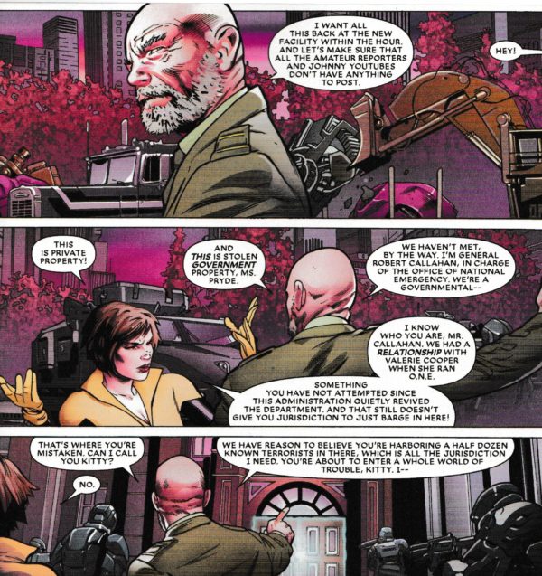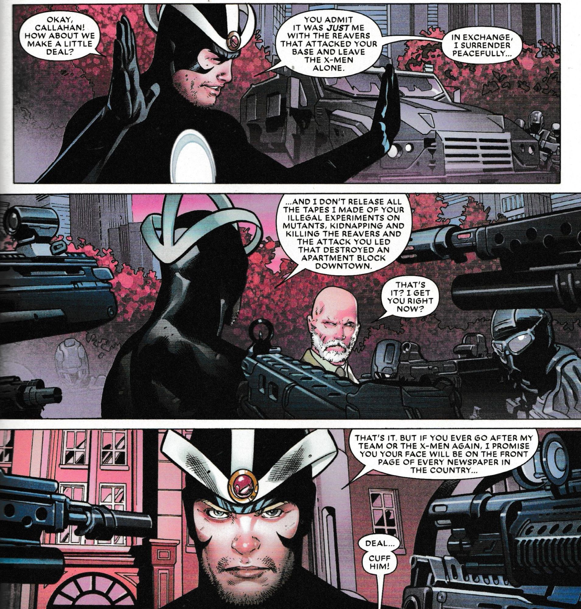 And the deal is done. Callahan gets taken off the table. Or at least until someone wants to play with Havok. Or work out what happened with the missing New Mutants. Or maybe when Scott comes back and asks after his brother…
