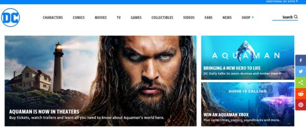 I then go back to google and type in DC Comics. I click on dccomics.com and the first thing I see? Donna Troy Debuts. The Donna Troy of the Titans web show. To the top right of that “A New Look at Atlantis”. 25 new photos of the upcoming Aquaman movie. Under that, “Batman’s Black Sheep” with an image of Batwoman. I confess I have no idea what it is about so I click on it. It is about an actual comic, Red Hood Outlaw #29.