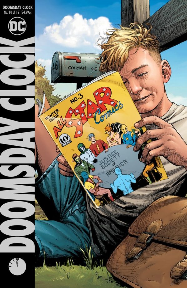 Ever since Doctor Manhattan’s pointy blue appendage appeared on the cover of 2016’s DC Rebirth #1 — no, not the pointy blue appendage you’re thinking of… we mean his finger! — the beleaguered fans of the DC Comics universe have been longing to find out just how Dr. Manhattan is connected. Fans have had to wait longer and longer as Doomsday Clock, the unauthorized sequel to Watchmen by Geoff “Jeff” Johns and Gary Frank, has suffered from delays