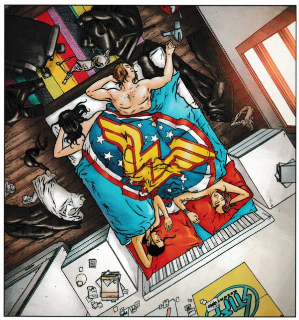 With slightly more clothes on than their original first appearance, but in no way subtextual now. Oh and the Wonder Woman duvet gets a couple more members underneath it…