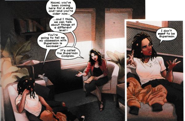 Which includes the therapy session for teenage adoptee Naomi, who always manages to miss Superman turning up.