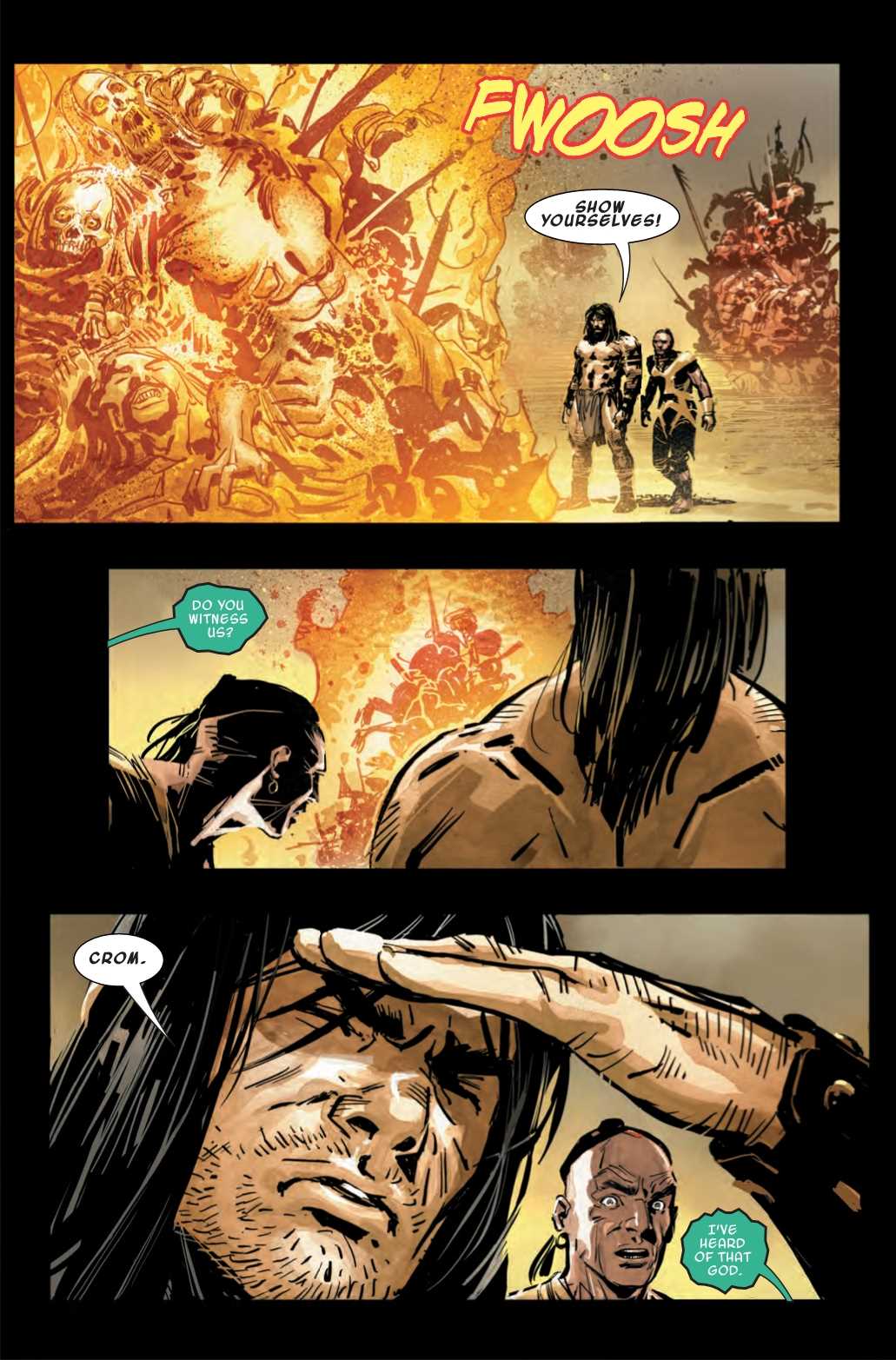 So in next week’s issue of Savage Sword of Conan, Marvel reveals the shocking fate of Crom, the god of Cimmerians, as seen in this preview…