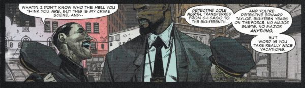 …as well as a little continuity for what came before the relaunch. Nothing much, just enough. We have a new cop in the scene, transferred in from Chicago…