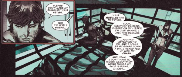 …Detective Cole North, an Untouchable it seems. We have the sex-scenes with the noir frame silhouettes and a new reaction to Matt’s blindness…