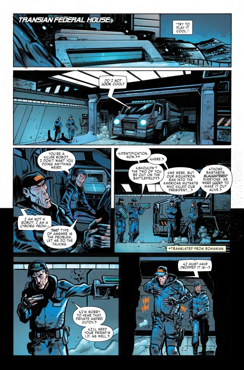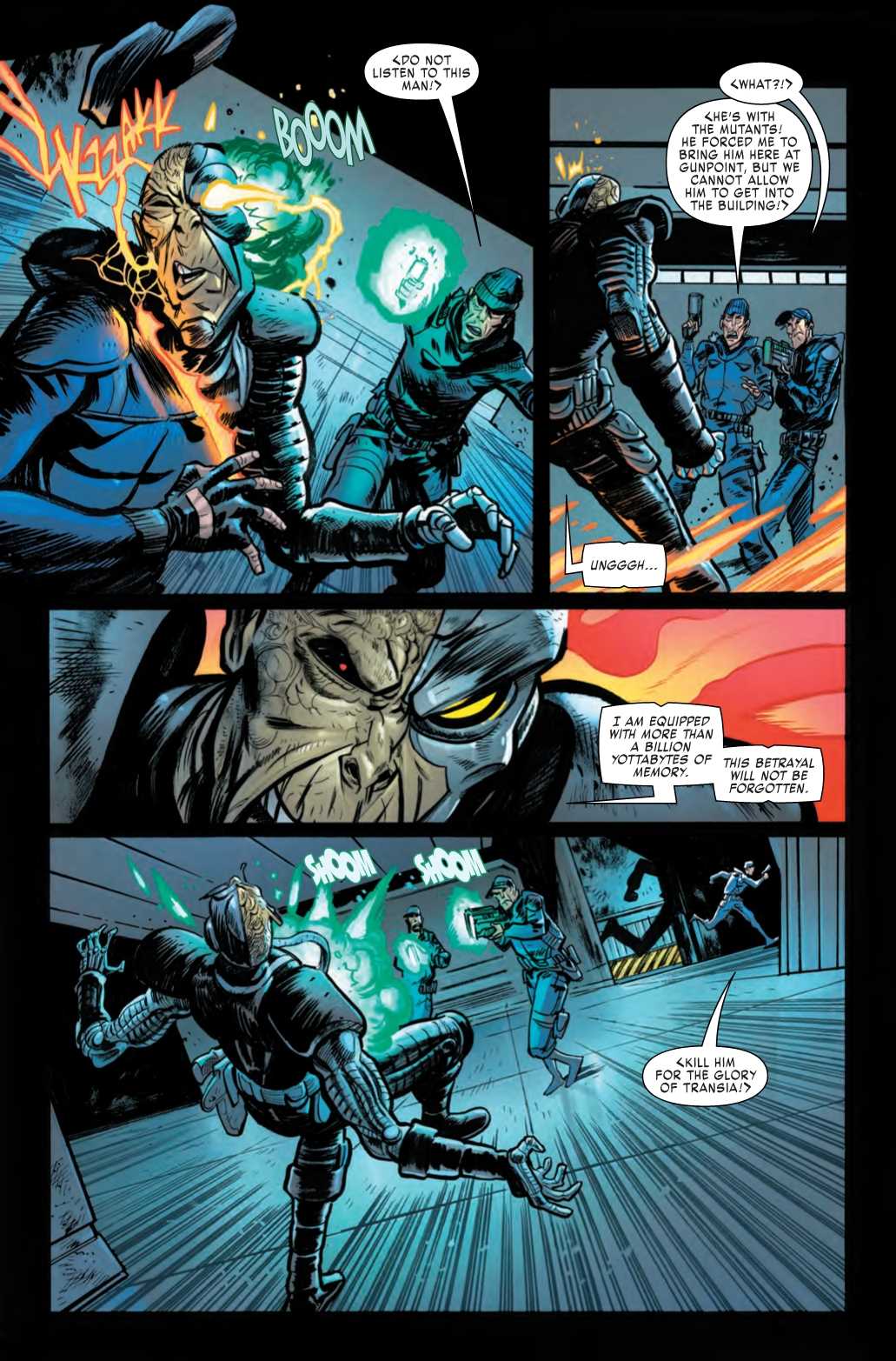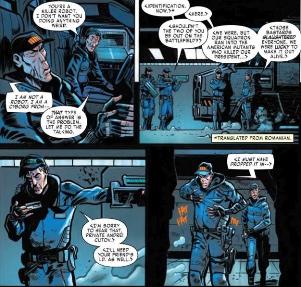 And in this preview of next week’s X-Force #3, Deathlok totally scews up the plan to infiltrate the Transian military complex… again!