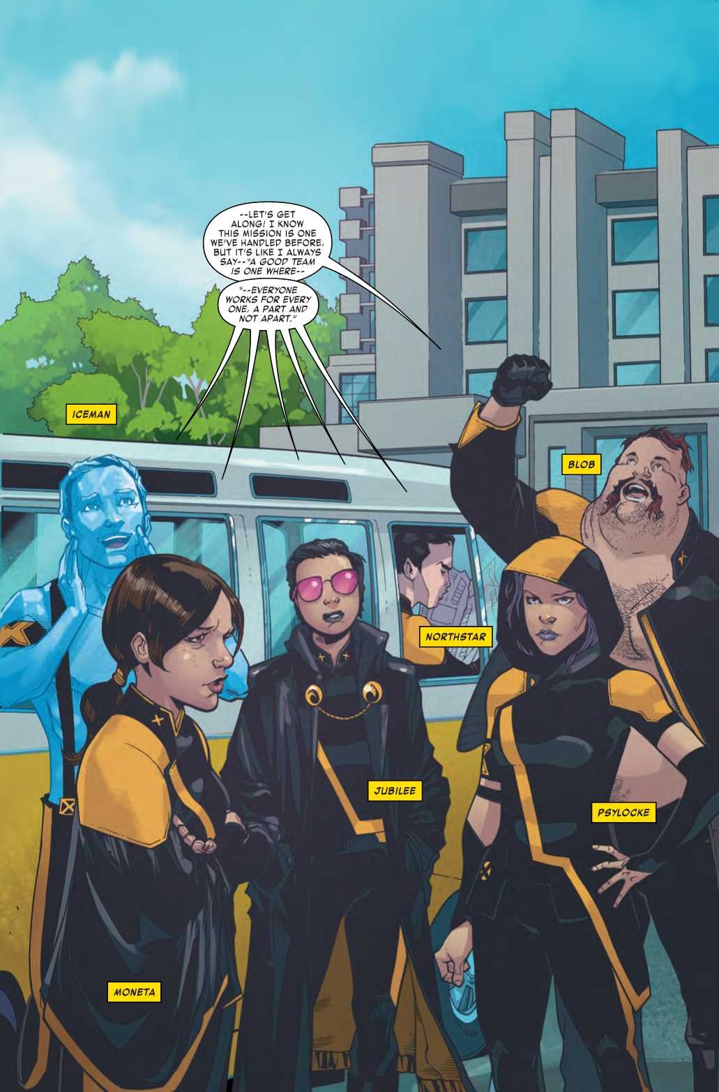 A perfect world doesn’t just…happen. It needs to be cultivated. That’s where the X-Tremists come in. Psylocke, Iceman, Northstar, Blob, Jubilee and Moneta protect people from threats they won’t even know existed, including the most insidious threat of all – love.