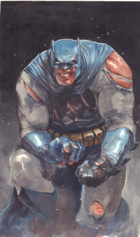 Of course, it’s the allegations of painting over other images that have caused Francesco Mattina a little grief in recent weeks. And so it is with this image. Such as this Frank Miller Dark Knight homage, a private commission from Gabrielle Del’Otto, posted online by its owner, Octavio D.