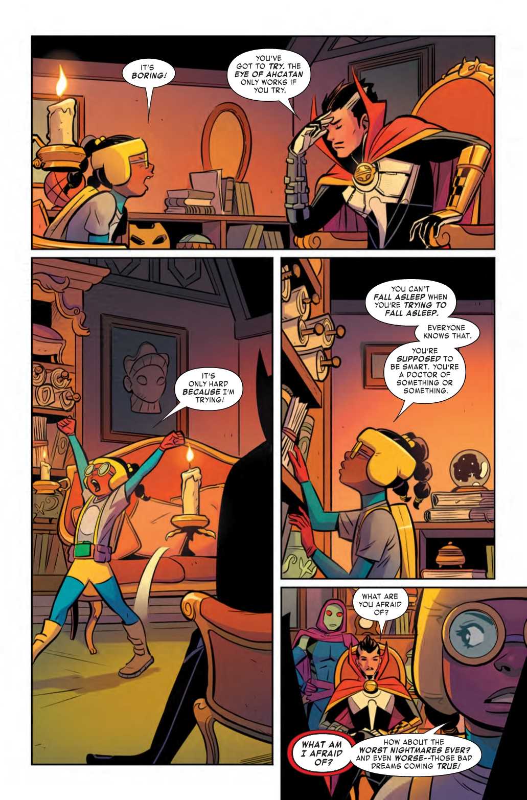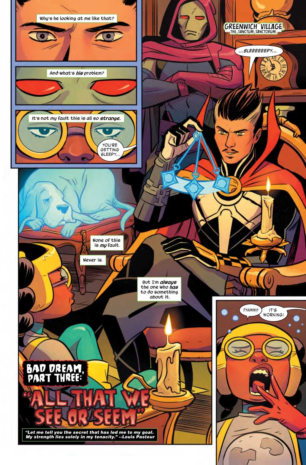 As Moon Girl and Devil traverse the Dreamscape, all is revealed about their host, Bad Dream…and he isn’t what you think! GUEST STARRING DOCTOR STRANGE!
